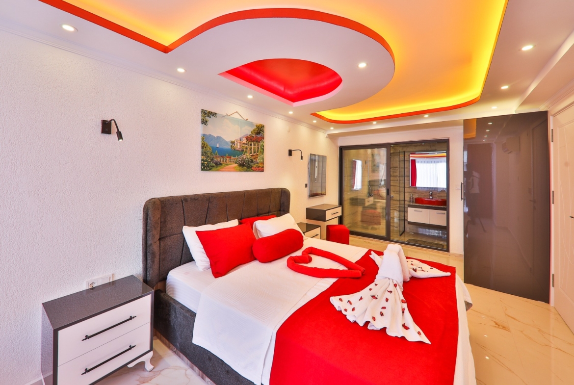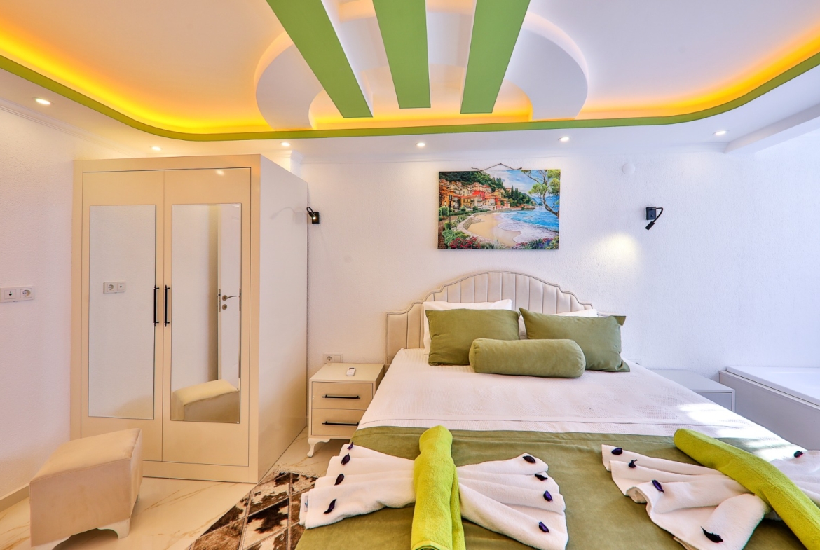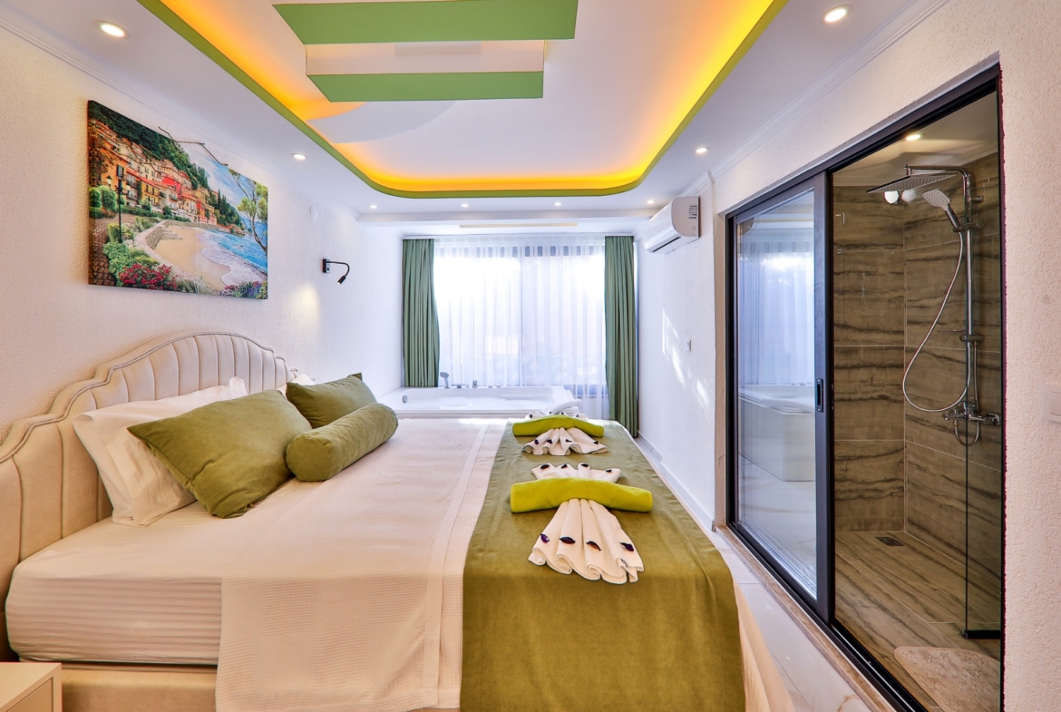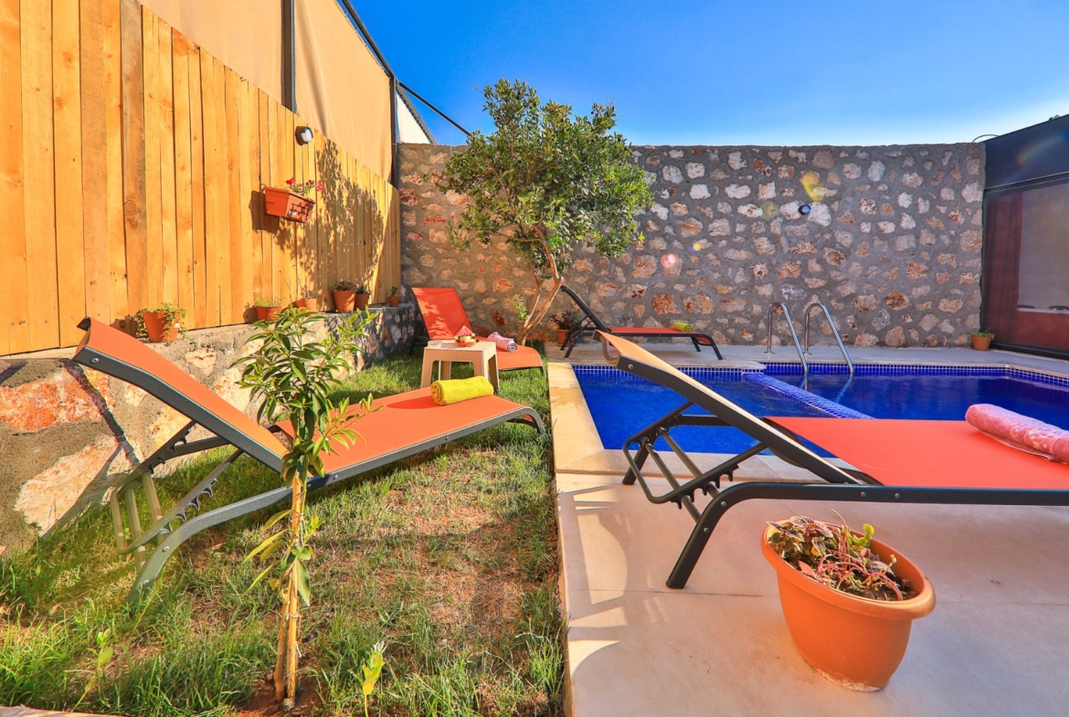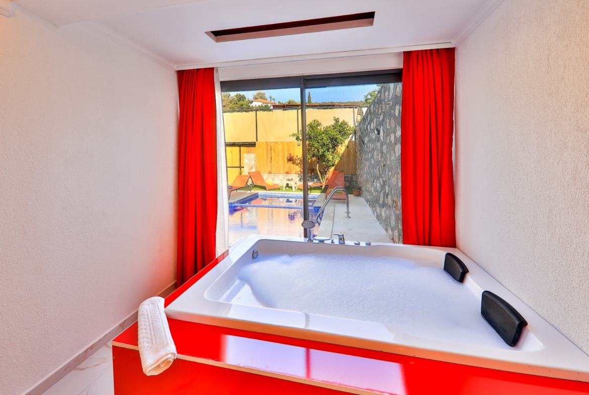 Villa Portakal Çiçeği 2, Kaş Gelemiş Patara mevkiinde bulunmaktadır. Modern, konforlu ve oldukça şık bir iç tasarıma sahiptir. Villamızda 2 adet yatak odası mevcut olup, 4 kişi konaklama imkanı bulunmaktadır. Yatak parçalarının bir tanesinin içerisinde jakuzi bulunmaktadır. Havuz ve havuz terasları korunaklı getirilen hale villamızı muhafazakar odalar, balayı çiftleri ve çekirdek odaları rahatlıkla tercih edebilirler. Ek olarak villamızda sauna ve hamam yer almaktadır.